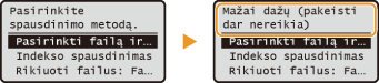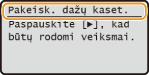 <Mažai>: Baigiasi dažomieji milteliai. Įsitikinkite, kad turite parengtą pakaitinę dažomųjų miltelių kasetę.