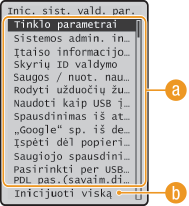 Galite atstatyti esamus Sistemos valdymo parametrai į numatytąsias reikšmes (Meniu sąrašo nustatymas). Kai kurių nustatymų atveju, norint užbaigti operaciją, jums reikės perkrauti aparatą.
