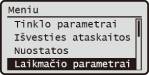 Visi laikmačio parametrai išvardyti su trumpais aprašais. Numatytieji parametrai pažymėti durklu (