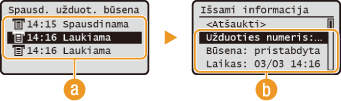 .![]() <Spausd. užduot. būsena>Rodomas apdorojamų, kopijuojamų ar apdorojimo laukiančių dokumentų sąrašas.