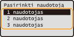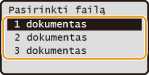 Jei atmintyje saugomi dviejų ar daugiau naudotojų apsaugotieji dokumentai, pirma rodomas ekranas <Pasirinkti naudotoją>, o tik po to <Pasirinkti failą>. Naudodami