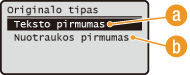 pasirinkite <Nuotraukos pirmumas> arba <Teksto pirmumas> ir paspauskite