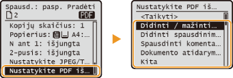 Spausdinimo nustatymų nurodymas tik PDF failams
