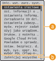 Lista menu ustawień). W przypadku niektórych ustawień, konieczny jest restart urządzenia celem zakończenia inicjowania.