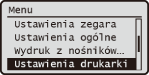 Priorytet ustawieńUstawienia skonfigurowane w danej aplikacji lub w sterowniku drukarki są nadrzędne w stosunku do tych określonych z poziomu urządzenia. Ustawienia opisane w tej sekcji są szczególnie przydatne w przypadku drukowania w systemach, takich jak UNIX, w których sterowniki drukarki są niedostępne.