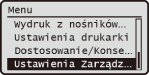 Wszystkie ustawienia z listy związane z ustawieniami zarządzania systemem są opatrzone krótkim opisem. Ustawienia domyślne oznaczone są przy pomocy znaku (