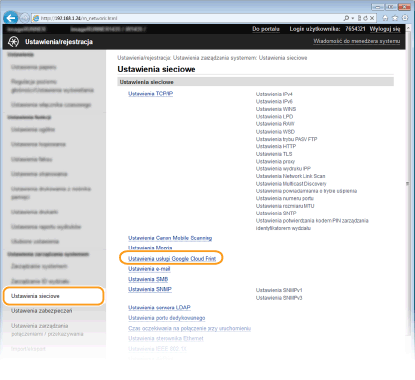 [Ustawienia usługi Google Cloud Print].