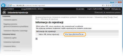 Kliknij adres URL wyświetlony w formie łącza oznaczonego jako [Adres URL strony rejestracji:].