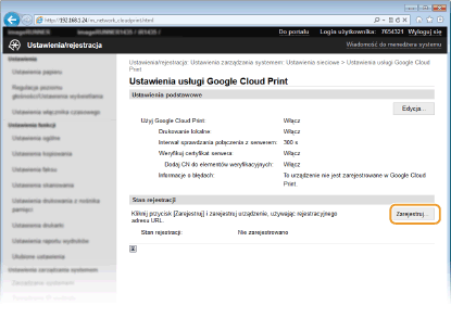 Zmiana ustawień technologii Google Cloud Print