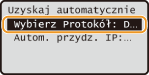 , a następnie nadaj ustawieniom <Wybierz protokół> i <Autom. IP> wartość <Wyłącz>. |