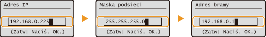 <Maska podsieci> <Adres bramy>.Wprowadź ustawienie za pomocą przycisków numerycznych i naciśnij przycisk