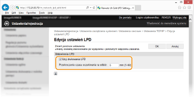 Zaznaczenie tego pola wyboru umożliwia wydruk za pomocą protokołu LPD. Jeśli drukowanie za pomocą protokołu LPD nie jest używane, należy usunąć zaznaczenie tego pola wyboru. [Użyj wydruku RAW]