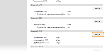 Zaznaczenie tego pola wyboru umożliwia wydruk za pomocą interfejsu WSD. Jeśli drukowanie za pomocą interfejsu WSD nie jest używane, należy usunąć zaznaczenie tego pola wyboru. [Użyj przeglądania WSD]