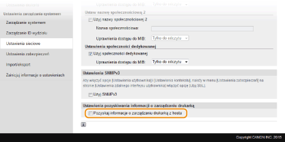 Jeśli nie używasz SNMPv1Jeśli wyłączone zostaną obie wersje protokołu SNMP, niektóre funkcje urządzenia, takie jak uzyskiwanie informacji o urządzeniu za pośrednictwem sterownika drukarki, nie będą dostępne.