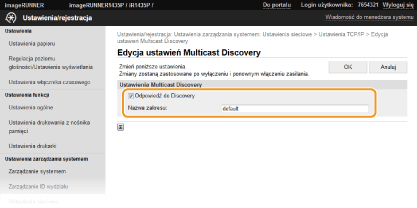 Kliknij [Edycja...] w [Ustawienia Multicast Discovery].