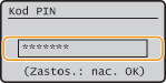 Należy wpisać kod PIN o maksymalnej długości siedmiu cyfr. Wpisany kod PIN wyświetla się w formie symboli.