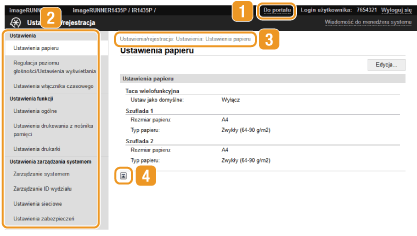 Ustawienia w części [Ustawienia zarządzania systemem] można określić tylko po zalogowaniu się w trybie menedżera systemu.