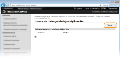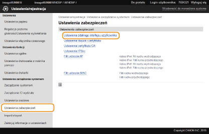 <Ustawienia zarządzania systemem> <Ustawienia zdalnego interfejsu użytkown.> <Ustawienia zabez.dost.zdal.interf. użyt.> <Włącz> Wprowadź kod PIN <Zastos.> Wprowadź kod PIN (Potwierdź) <Zastos.> .W razie inicjowania ustawień Zdalnego interfejsu użytkownikaKod PIN do dostępu do Zdalnego interfejsu użytkownika jest także inicjowany. Po inicjalizacji należy zresetować kod PIN. Inicjowanie menu