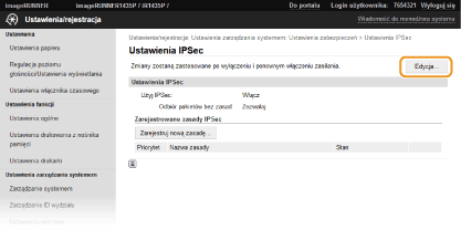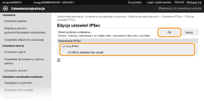 Wybierz tę opcję, aby używać protokołu IPSec w przypadku wszystkich pakietów IP wysyłanych na adres IPv6 urządzenia lub z tego adresu.