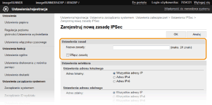 W polu tekstowym [Nazwa zasady] wprowadź nazwę zasady składającą się maksymalnie z 24 znaków alfanumerycznych.