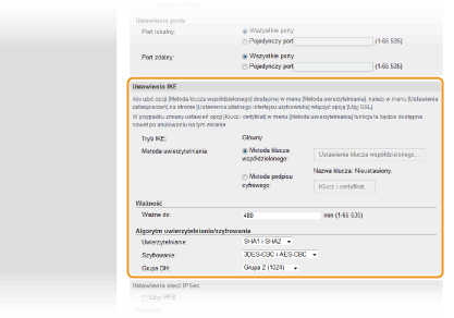 Określ ustawienia [Ważne do:] oraz [Uwierzytelnianie:]/[Szyfrowanie:]/[Grupa DH:].