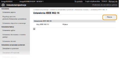 Uwierzytelnianie zgodne ze standardem IEEE 802.1X można włączyć lub wyłączyć za pomocą przycisku  . Ustawienia IEEE 802.1X