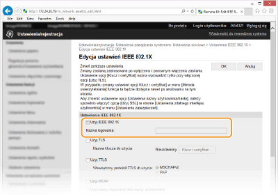Zaznaczenie tego pola wyboru włącza funkcję uwierzytelniania zgodnego ze standardem IEEE 802.1X.