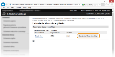 Kliknij opcję [Zarejestruj klucz domyślny] po prawej stronie pary klucza, którego chcesz użyć do uwierzytelnienia klienta.