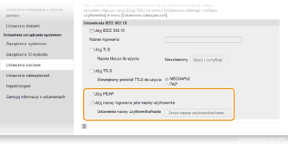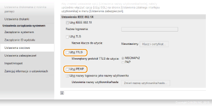 Zaznacz pole wyboru [Użyj TTLS] lub [Użyj PEAP].