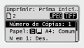 Mostra o número de série da máquina e a lista dos equipamentos instalados ou ativados, tais como a gaveta para papel opcional.