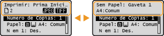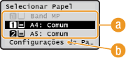 (Seleção/Configuração de papel) para selecionar o papel que quer utilizar no ecrã <Selecionar Papel>. Também pode, por exemplo, premir esta tecla para alterar as definições de papel quando colocar um tipo ou tamanho de papel que seja diferente do tipo ou tamanho do papel colocado anteriormente. Tenha em atenção que a definição de papel tem de ser especificada corretamente para assegurar a alimentação adequada do papel.