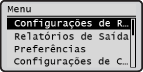 , aparece o ecrã <Menu>. Neste ecrã, pode começar a especificar as definições gerais da máquina, tais como <Configurações Comuns> ou <Configurações de Cronômetro>, assim como muitas das definições de impressão.