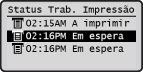 (Controlo de Estado), aparece um ecrã que lhe permite verificar o estado dos documentos que estão a ser impressos. Também pode verificar o estado da máquina, como o nível do toner ou as informações de configuração da rede, por exemplo, o endereço IP da máquina.