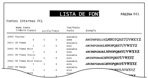 Pode imprimir uma lista para verificar os tipos de letra disponíveis no modo PCL.