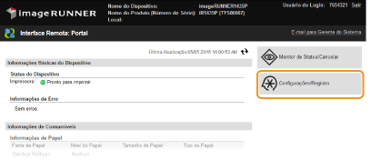 Clique em [Configurações/Registro].