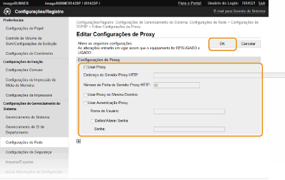 Selecione a caixa de verificação [Usar Proxy] e especifique as definições necessárias.