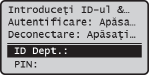 / pentru a selecta <ID Dept.> (sau <ID administrator>) şi apăsaţi . |