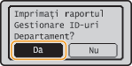 Când Gestionare ID departamente este activat, puteţi imprima un raport pentru a verifica numărul total de pagini care au fost imprimate pentru fiecare ID departament. Raportul vă permite să monitorizaţi utilizarea aparatului şi să îmbunătăţiţi gestionarea.