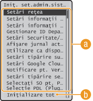 Lista de meniuri de setări). Pentru anumite setări, trebuie să reporniţi aparatul pentru a finaliza iniţializarea.