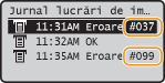 Apare un număr de trei cifre (cod de eroare) pe ecranul <Monitor de stare> dacă apare o eroare, precum eşuarea imprimării sau umplerea memoriei. Verificaţi informaţiile de mai jos pentru detalii despre cauzele şi soluţiile pentru fiecare cod de eroare.