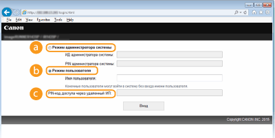 С помощью уделенного ИП можно выполнять все операции и настройку параметров. Введите соответствующий идентификатор [ИД администратора системы:] и PIN-код [PIN администратора системы:] Задание ИД администратора системы).