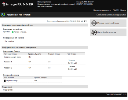Для удаленного управления нужно ввести IP-адрес аппарата в веб-браузере и запустить удаленный ИП. Заранее проверьте, задан ли IP-адрес аппарата (Просмотр параметров сети). В случае сомнений обратитесь к администратору сети.