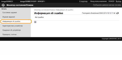 При появлении ошибки эту страницу можно просмотреть, нажав сообщение, отображаемое в пункте [Информация об ошибке] на странице портала (главная страница) (