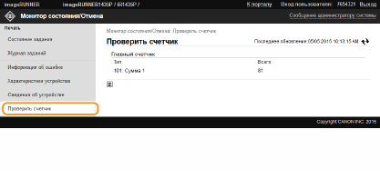 Отображаются данные счетчика об общем количестве отпечатанных страниц. Дополнительные сведения о счетчике см. в разделе