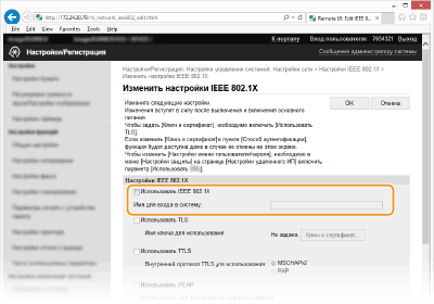 Установите флажок [Использовать IEEE 802.1X], введите имя для входа в систему в поле [Имя для входа в систему:] и задайте необходимые параметры.