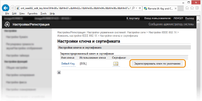 Нажмите кнопку [Зарегистрировать ключ по умолчанию] справа от пары ключей, которую требуется использовать для аутентификации клиента.