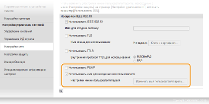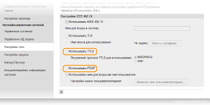 Установите флажок [Использовать TTLS] или [Использовать PEAP].
