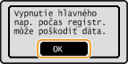 Spustí sa registrácia. Počkajte, kým sa zobrazí hlásenie <Nainštalov. Účinné po vypnutí a zapnutí hlavného napájania.>.