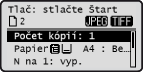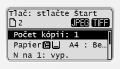 Na displeji sú zobrazené okná funkcie tlače z USB a jej nastavenia. Na displeji môžete tiež skontrolovať informácie, ako sú chybové správy a stav prevádzky.
