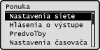 Všetky nastavenia siete sú uvedené s krátkymi opismi. Predvolené nastavenia sú označené krížikom (